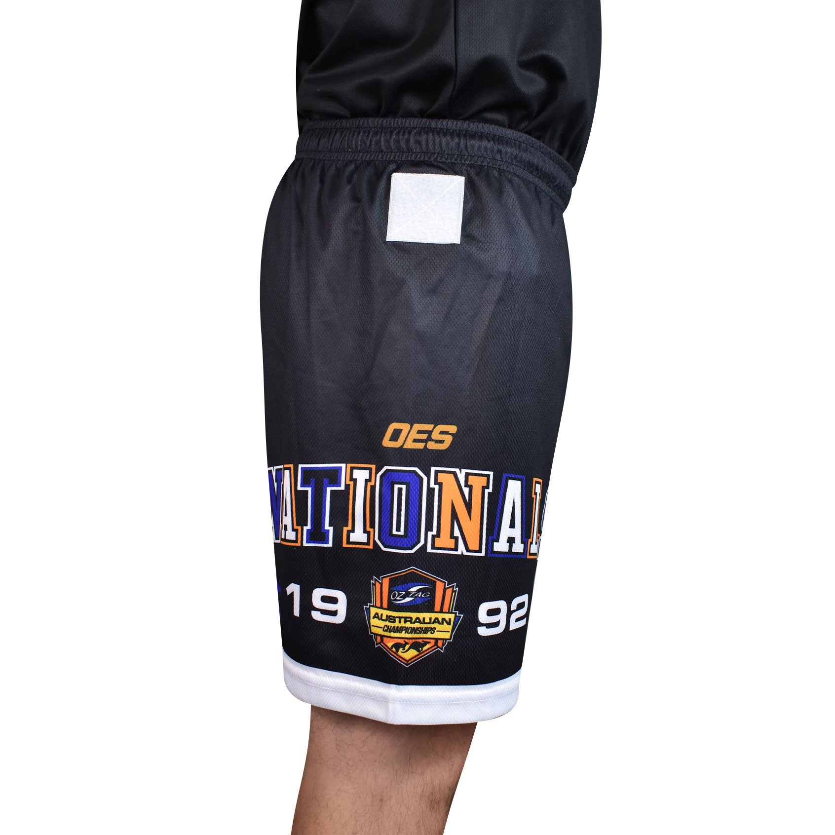 This is an oztag playing short with a velcro patch for affixing a tag.